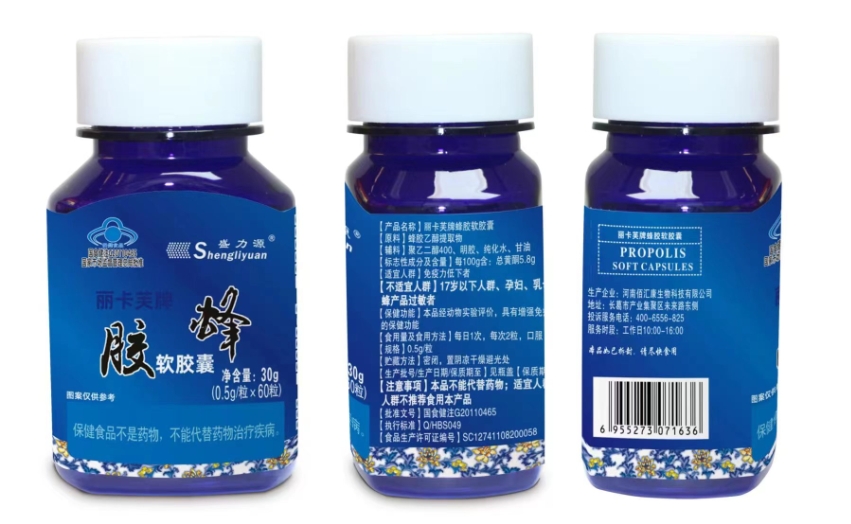 【產品名稱】:麗卡芙牌蜂膠軟膠囊 6瓶裝(青花瓷)
